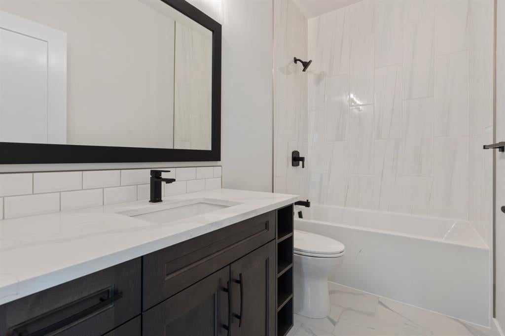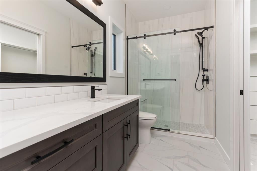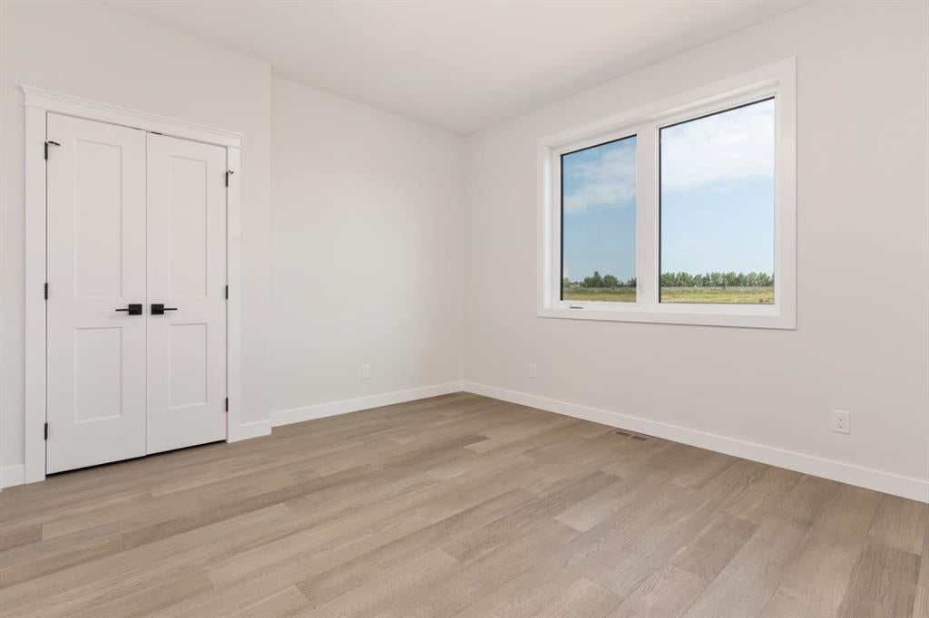 Brand New Build from Battle River Homes. Fully Finished Up and Down! Only 2 steps from the Garage to the main level! Great Bungalow layout with Oversized Rear Garage 25x24/29 with epoxy floors, a floor drain, hot/cold taps, gas rough-in, space for working area and finished to perfection. ICF Foundation, Basement In-floor Heat, Triple Pane Windows, Built-in Central Vac with retractable hose. Excellent Curb Appeal with an Inviting Front Covered Veranda. Step inside and take in this new floorplan from Battle River Homes - open concept arrangement sees a front facing living room with cozy electric fireplace with wood accents and mantle, central kitchen and rear dining area that overlooks a private 10x12 no maintenance deck and yard space. 9ft ceilings on the main with 10ft coffered in the living room. Gorgeous kitchen with White Maple Cabinetry, Quartz counters with waterfall edge anchored by a richly stained 8'7 central island with eating bar. Very accommodating eating area with room for the whole family and your favorite dining set - there's also a handy pantry. Excellent Primary Bedroom suite with private 4pc ensuite, double sink with quartz counters, a fully tiled shower with bench seat and a 6x9'2 Walk-in Closet! The main floor also sees a 2nd bedroom at the front - excellent for guests or as a hobby room, an additional 4pc bath and laundry in the mudroom. Basement comes fully completed in vinyl plank and sees a huge 38ft long family room, 2 additional bedrooms and a 4pc bath. A wonderful Bungalow floorplan with minimal exterior upkeep. You'll Love It!.