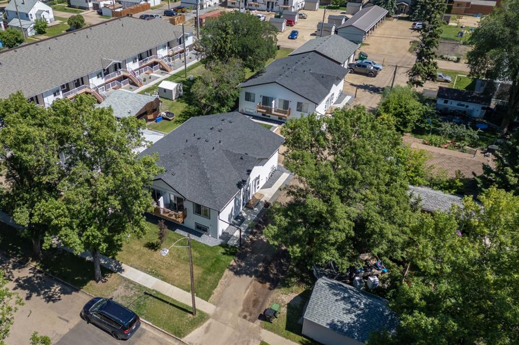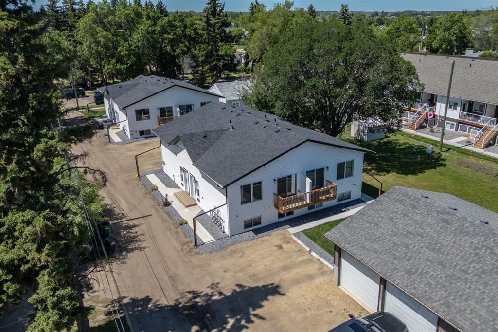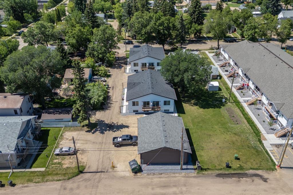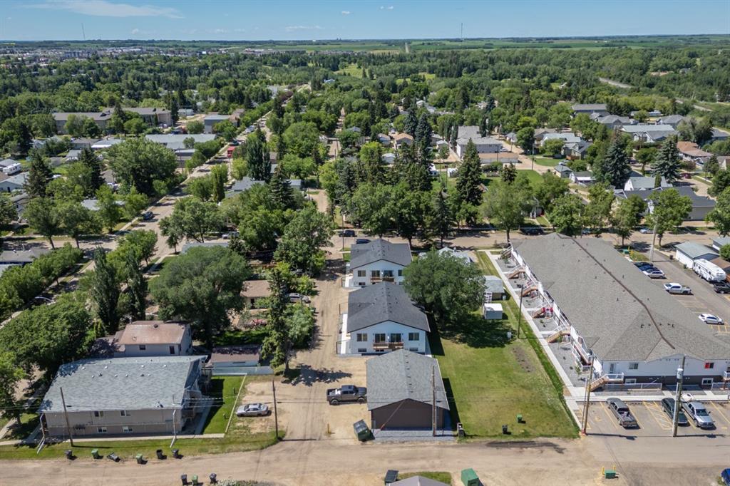 An Exceptional Investment Opportunity in the Heart of Camrose! This remarkable property offers a rare combination of income potential and modern living, featuring eight units across two fourplex buildings and a fully finished, heated triple car garage with two bays - all on one single titled lot. Perfectly positioned just moments from downtown Camrose, this investment gem blends convenience with contemporary style, making it a standout choice for savvy buyers. Eight spacious units boast an open-concept layout designed for comfort and functionality, including a lovely kitchen with stainless steel appliances, terrific living room, two bedrooms, one bathroom, beautiful flooring and in-unit laundry. Currently, all eight units are fully rented, delivering a steady and reliable cash flow from day one. The rented garage spaces further enhance the properties earning power, making this an investor’s dream. Whether you're seeking a turnkey income-generated asset or a home where you can live in one unit and rent out the others, this property offers unmatched versatility and long-term value. Situated in the heart of Camrose, these fourplexes are just steps away from downtown, providing residents with easy access to shopping, dining, entertainment and all essential amenities. This vibrant and connected lifestyle ensures strong tenant demand and lasting appeal. With its modern design, full occupancy, and strategic location, this property is a rare find. It’s ideal for investors looking to capitalize on a thriving rental market or homeowners wanting to offset their mortgage by renting out additional units. Don't miss your chance to own this income-producing treasure, the opportunities here are truly endless!