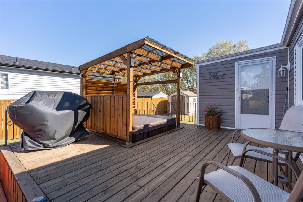 Meticulous, Original Owner Property in the Beautiful Town of Daysland. Pride of Ownership has never been more evident. You'll be impressed how well this property has been cared for and updated over the years. This 3 bedroom home has seen most of the vinyl windows updated along with the Vinyl Siding, Furnace, AC and HW Tank in the last 5-6 years plus BRAND NEW Pex Water lines! Inviting Open Concept design with vaulted ceiling and updated flooring. Incredible Kitchen design sees loads of cabinetry space with updated doors, newer fridge and stove, a wonderful dinette space and a handy coffee bar area with even more storage! Relax in the Private Primary Bedroom that sees its own 4pc ensuite bathroom with jet tub and a huge wall of closet space. Located near the primary is laundry room along with access to the covered porch area that acts as a great boot room and storage area. At the other end of the home you'll be pleased to find 2 additional bedrooms with their own private 4pc bath. The Stunning Exterior showcases a large fenced yard with raised deck and private covered hot tub area along with 4 sheds for even more storage. Not to be outdone is the 18x24 heated garage with 10ft door and double driveway for extra parking. This property is a true showtopper and ready for you to call it Home.