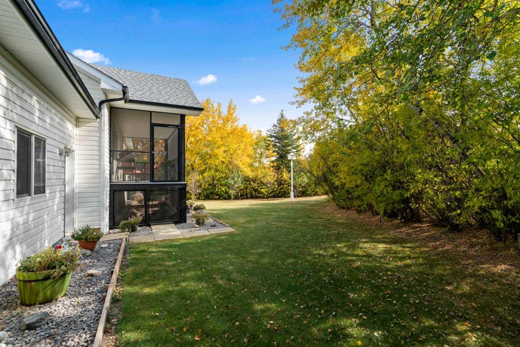 IMAGINE… a FULLY PRIVATE acreage with a NEWER HOME that has CITY WATER AND SEWER just minutes from Camrose in Braim Subdivision. Imagine 1,320 square feet built for YOU! Coming home, you will love pulling into a 26x26’ garage with in-floor heat. You will walk into a COUNTRY KITCHEN with walk-in pantry and an island complete with pull out drawers. You can prep a meal while visiting with family and guests. The living room has a gas fireplace to keep the cooler nights feeling cozy and comfortable. The master suite has a separate shower and jet tub with a vanity large enough for two people to get ready at the same time. The custom built walk-in closet provides lots of options for hanging or folded clothes. Another bedroom and MAIN FLOOR LAUNDRY complete the main floor. The lower level has large windows for TONS of natural light. There is a MASSIVE family room and a large bedroom. There is a 3 piece bathroom and a storage room that would make a cold room the envy of anyone who cans or gardens! Outside, the south facing covered deck opens up to a completely treed, private yard. There is an open area to enjoy a fire or watch Purple Martins! You will love the effort they put into planting the trees to make this your true OASIS. There is opportunity to put your taste into the flooring of the basement, add an extra bedroom and how you wish to finish the garage. This home has both forced air and in-floor heat (basement and garage). Shingles were done 2024. Hot water is on-demand. WELCOME HOME!