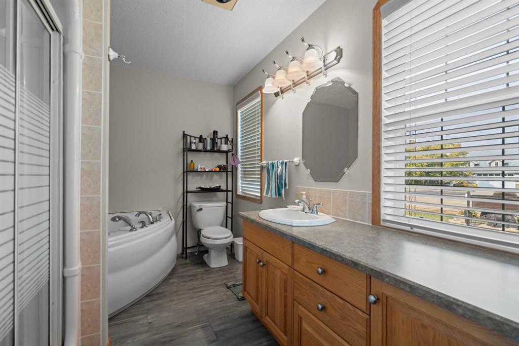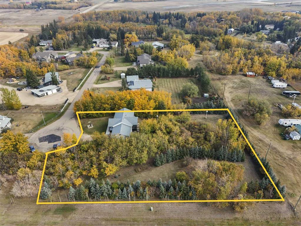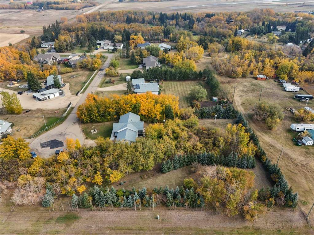 IMAGINE… a FULLY PRIVATE acreage with a NEWER HOME that has CITY WATER AND SEWER just minutes from Camrose in Braim Subdivision. Imagine 1,320 square feet built for YOU! Coming home, you will love pulling into a 26x26’ garage with in-floor heat. You will walk into a COUNTRY KITCHEN with walk-in pantry and an island complete with pull out drawers. You can prep a meal while visiting with family and guests. The living room has a gas fireplace to keep the cooler nights feeling cozy and comfortable. The master suite has a separate shower and jet tub with a vanity large enough for two people to get ready at the same time. The custom built walk-in closet provides lots of options for hanging or folded clothes. Another bedroom and MAIN FLOOR LAUNDRY complete the main floor. The lower level has large windows for TONS of natural light. There is a MASSIVE family room and a large bedroom. There is a 3 piece bathroom and a storage room that would make a cold room the envy of anyone who cans or gardens! Outside, the south facing covered deck opens up to a completely treed, private yard. There is an open area to enjoy a fire or watch Purple Martins! You will love the effort they put into planting the trees to make this your true OASIS. There is opportunity to put your taste into the flooring of the basement, add an extra bedroom and how you wish to finish the garage. This home has both forced air and in-floor heat (basement and garage). Shingles were done 2024. Hot water is on-demand. WELCOME HOME!