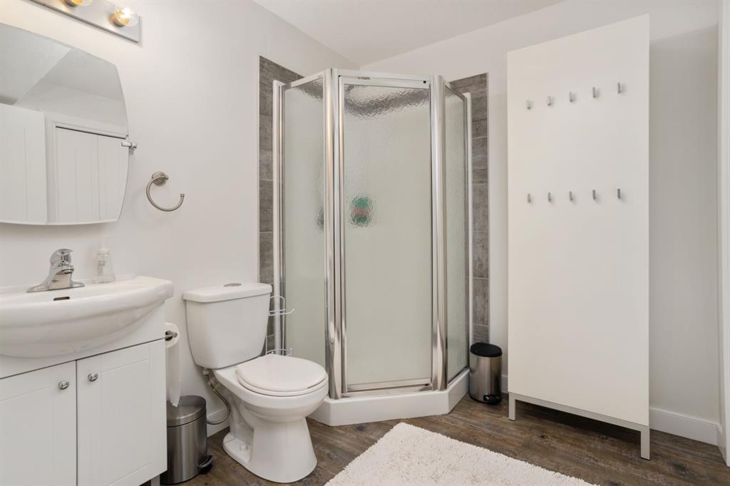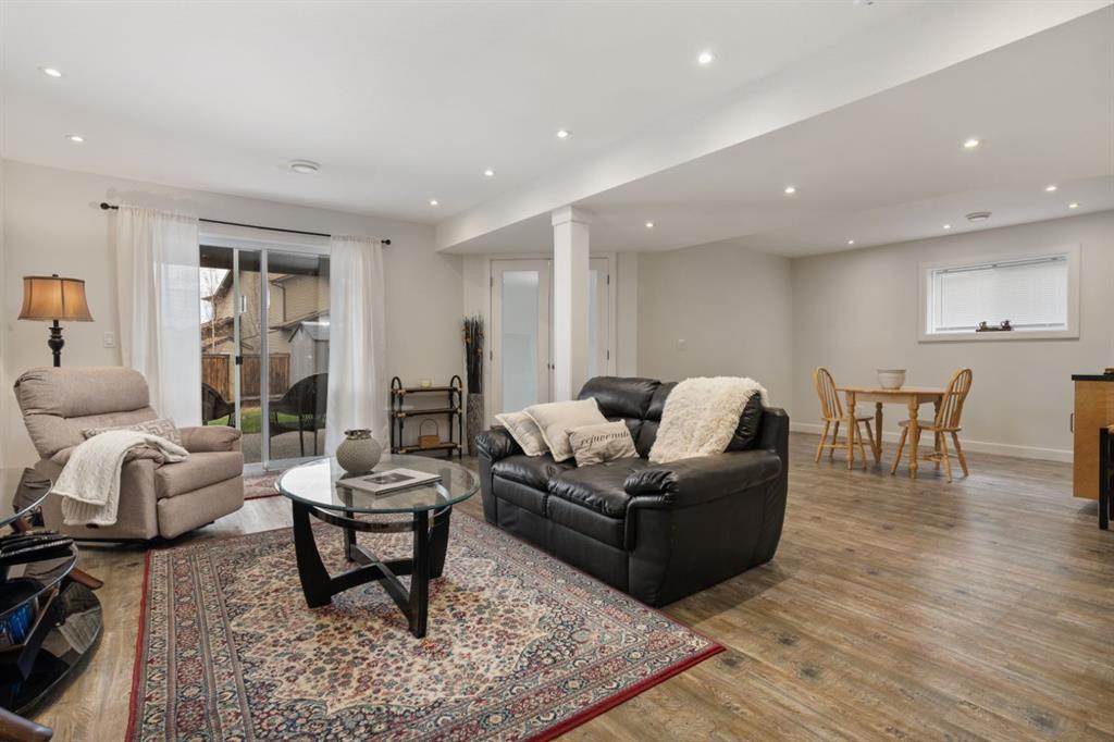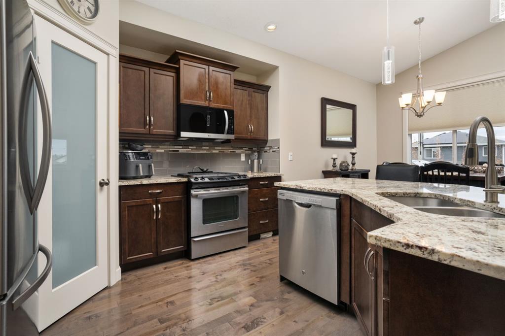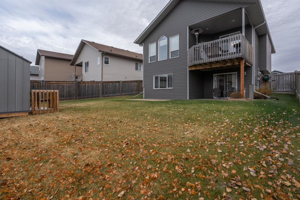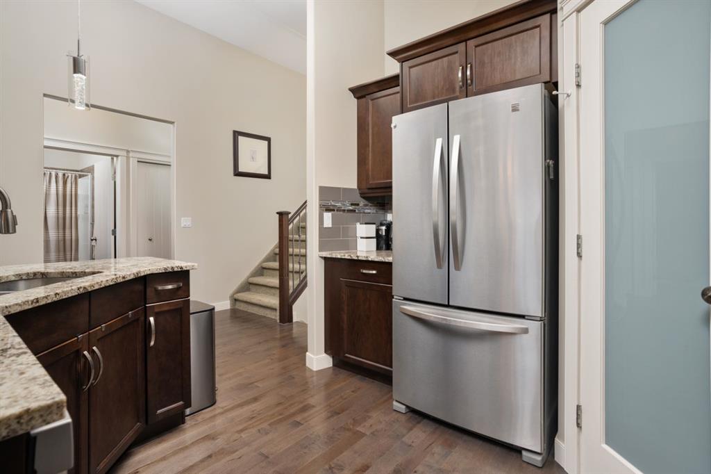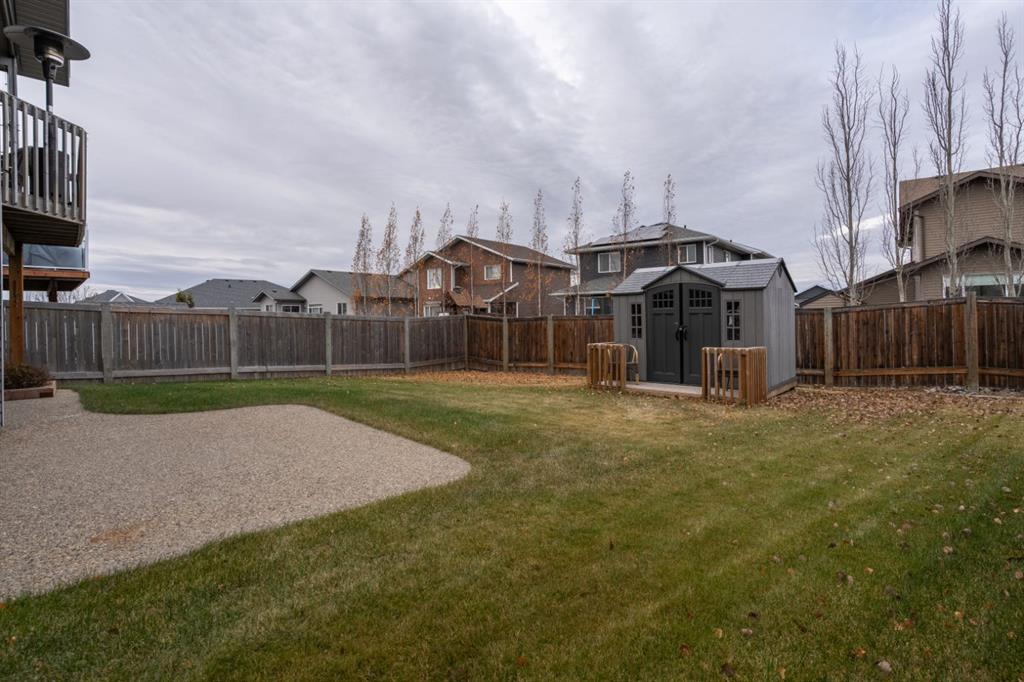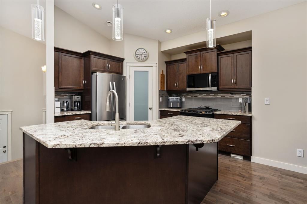 Absolutely Immaculate! Fully Finished Multi-level with Walk Out Basement in the Family Friendly Creekview Subdivision. This home is a stunner with vaulted ceilings, hardwood floors, granite kitchen counters, open concept living, AC, Heated Garage and a large fenced yard. Great layout with 2 main floor bedrooms and 4pc bath plus a private Primary Space on the upper level complete with walk-in closest and a huge 5pc ensuite with soaker tub and separate shower. Beautiful kitchen with dark cabinetry, granite counters, under cabinet lighting, gas stove, corner pantry and eating bar. Walkout basement comes finished with vinyl plank flooring, a large living area, french doors to a 4th bedroom with double closets and a flex space with bar sink and cabinetry - there's also a handy 3pc bath with laundry plus storage under the stairs. Excellent outdoor living with a fully fenced yard, good shed, raised 11x12 Covered Deck with gas line and a lower concrete patio off the walk-out basement for easy entertaining. Nothing to do but move in!