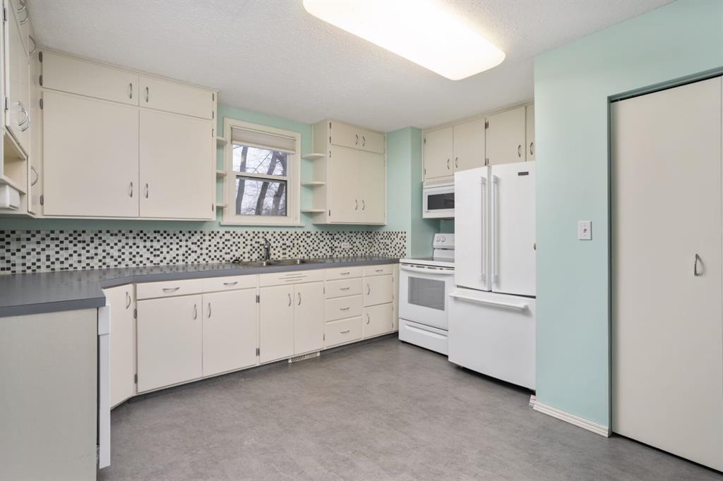 Prime Development Opportunity - 99.95x150 Lot on 1 Title - Zoned R2 with Discretionary Use up to 10 units. Single Family Dwelling in good shape with mostly updated Vinyl Windows on the upper level, some updated vinyl plank flooring, Hot Water Tank '24. Nice open and bright living room, good working kitchen with eating area, cozy flex space at front entry that could make a good home office, 2 bedrooms up and 1 down along with a room that could be finished off as a 4th. Updated main floor 3pc bath with full shower. Single detached garage. This is a good holding with interim renting capability before looking to develop or enjoy the oversized yard for you and your family.