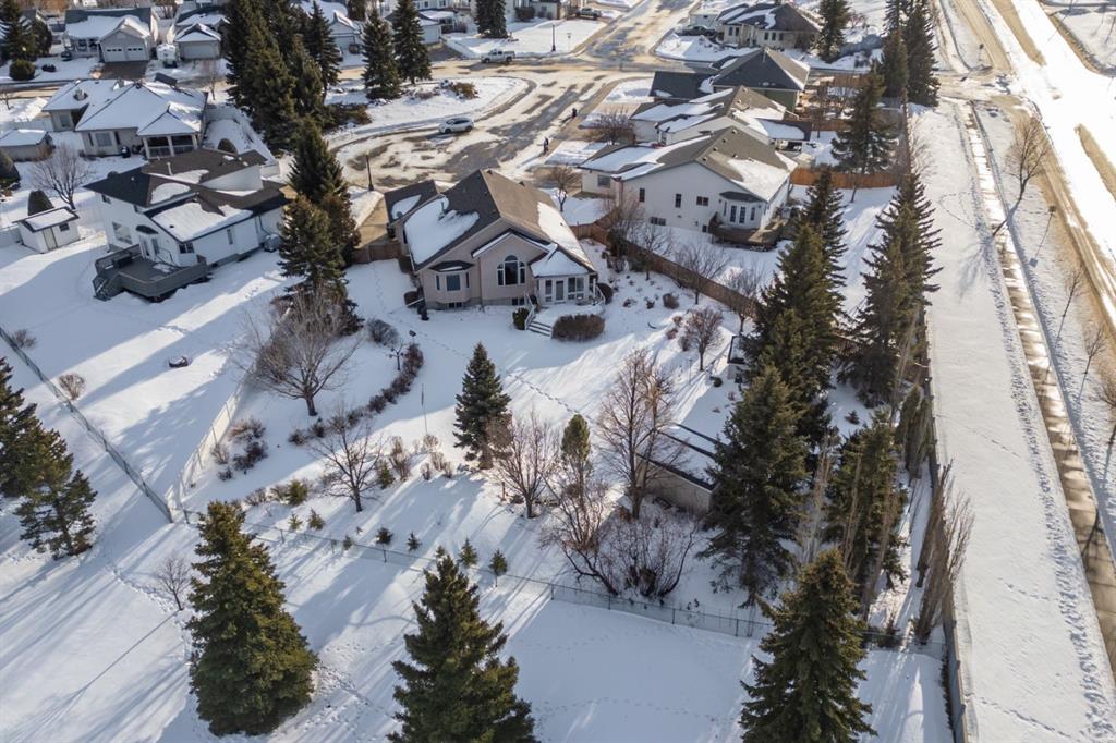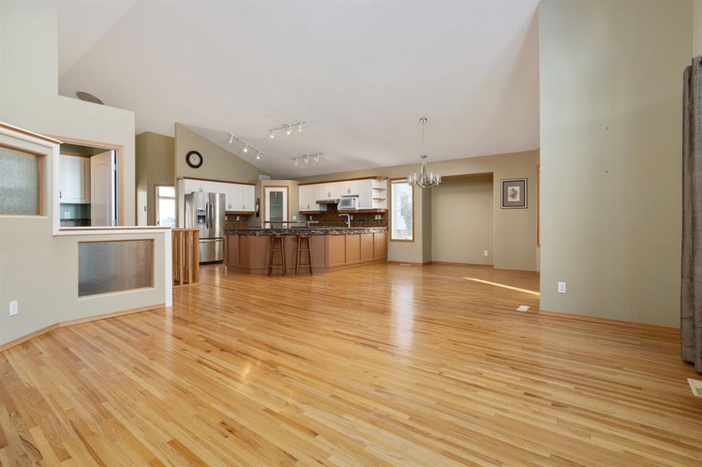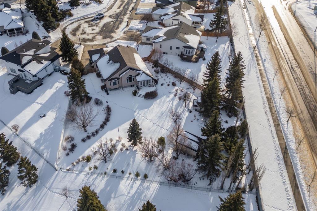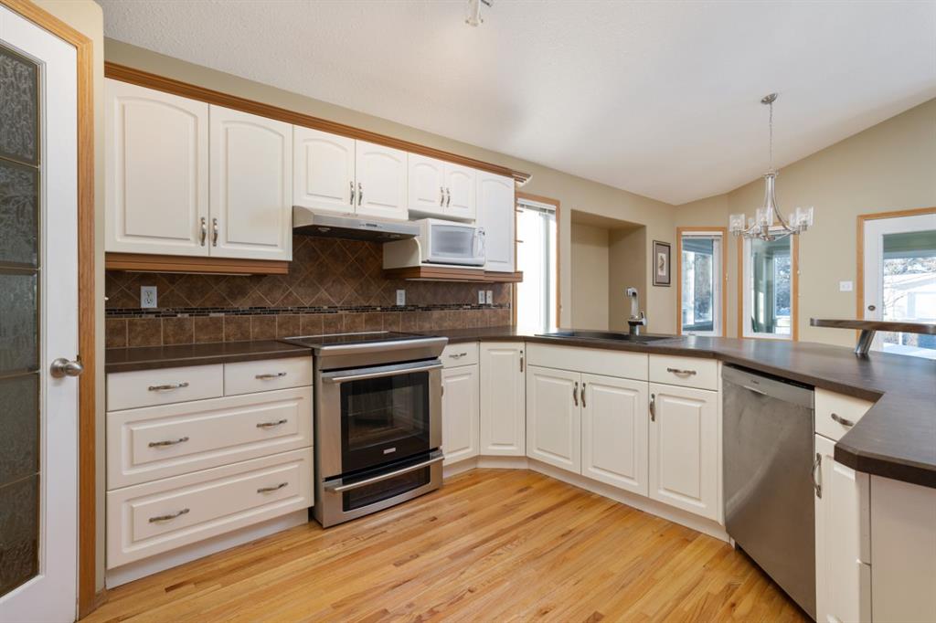 Parkridge is Calling! Have a look at this beautiful, fully finished Bungalow with a fantastic location. Situated on almost half an acre at the end of a cul de sac AND backing a green space! Over 1600 sqft plus a cozy sunroom that gives view across your private, maturely landscaped backyard - makes for the perfect backdrop for you and your family. Vaulted ceilings, hardwood/tile floors, open concept design, main floor laundry and more. This great floor plan sees 2 dedicated main floor bedrooms and a room at the front with closet that can easily act as a 3rd or use as a home office. Excellent entertaining space anchored by a huge kitchen with white cabinetry, corner pantry and eating bar plus a nice dining area that you can expand for family occasions. Retire to the spacious living room with vaulted ceilings and a tall window with a soaring view to the yard. Conveniently located off this space is the primary bedroom with the same views, a walk in closet, private 4pc bath with large tub and walk-in tile shower - as an added bonus the laundry room is right outside the door. Heading downstairs you'll enjoy the fully finished space with 2 bedrooms, a 3pc bath, 2 family room areas and a flex space with a bank of cabinets, Fridge and sink plus lots of dedicated storage. Comes with a nice double garage with epoxy flooring and RV space that could be expanded into the yard for larger units. The yard... incredible... mature landscaping with a mix of trees and shrubs, fully fenced and no neighbours behind you; there's even a cute 8x10 play shed and a newer 12x16 Shed with Overhead door and power - a great workshop or seasonal storage. There is so much to love about this place and with quick possession available it is ready and waiting for you to call it home.