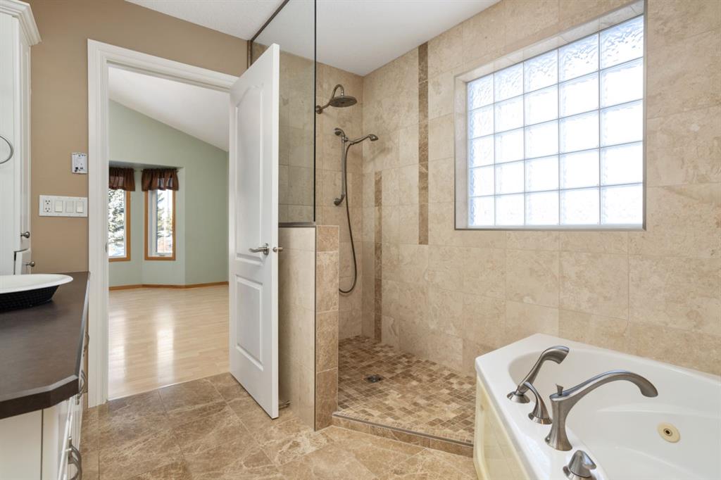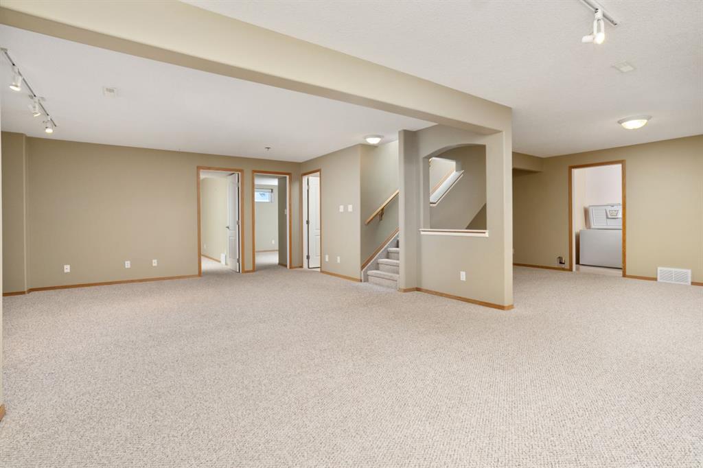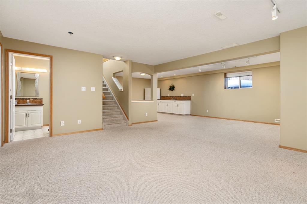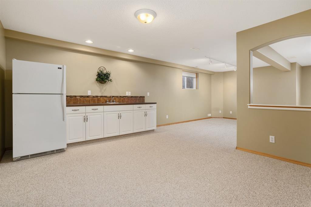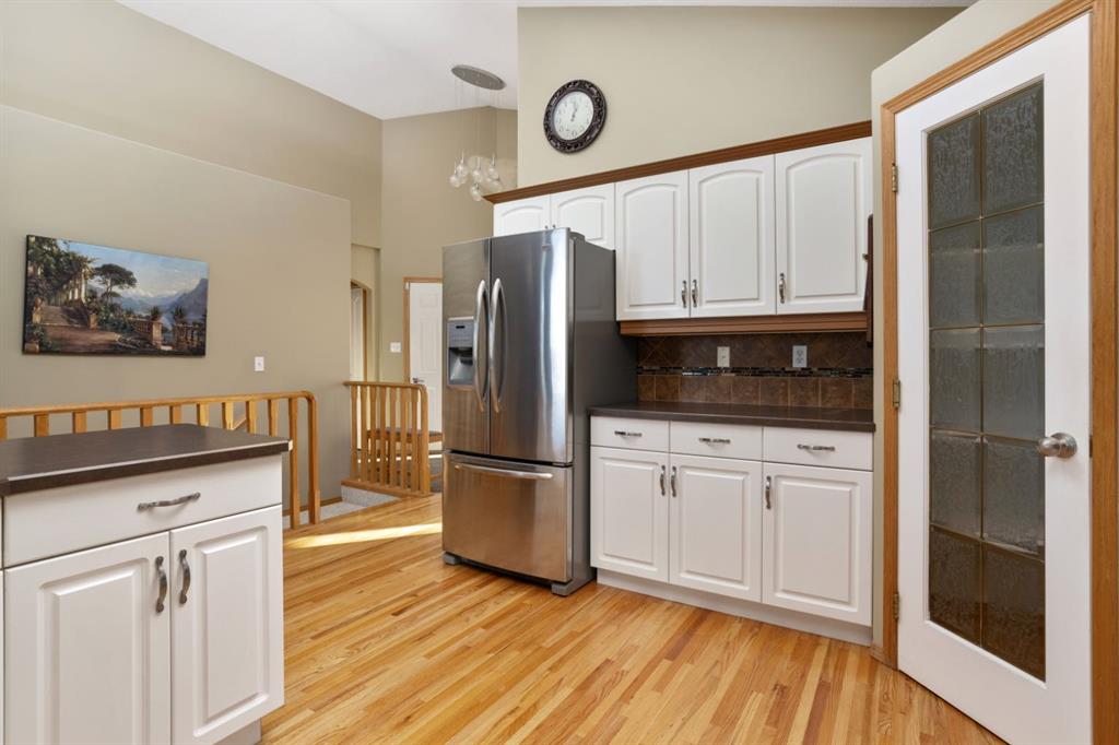 Parkridge is Calling! Have a look at this beautiful, fully finished Bungalow with a fantastic location. Situated on almost half an acre at the end of a cul de sac AND backing a green space! Over 1600 sqft plus a cozy sunroom that gives view across your private, maturely landscaped backyard - makes for the perfect backdrop for you and your family. Vaulted ceilings, hardwood/tile floors, open concept design, main floor laundry and more. This great floor plan sees 2 dedicated main floor bedrooms and a room at the front with closet that can easily act as a 3rd or use as a home office. Excellent entertaining space anchored by a huge kitchen with white cabinetry, corner pantry and eating bar plus a nice dining area that you can expand for family occasions. Retire to the spacious living room with vaulted ceilings and a tall window with a soaring view to the yard. Conveniently located off this space is the primary bedroom with the same views, a walk in closet, private 4pc bath with large tub and walk-in tile shower - as an added bonus the laundry room is right outside the door. Heading downstairs you'll enjoy the fully finished space with 2 bedrooms, a 3pc bath, 2 family room areas and a flex space with a bank of cabinets, Fridge and sink plus lots of dedicated storage. Comes with a nice double garage with epoxy flooring and RV space that could be expanded into the yard for larger units. The yard... incredible... mature landscaping with a mix of trees and shrubs, fully fenced and no neighbours behind you; there's even a cute 8x10 play shed and a newer 12x16 Shed with Overhead door and power - a great workshop or seasonal storage. There is so much to love about this place and with quick possession available it is ready and waiting for you to call it home.