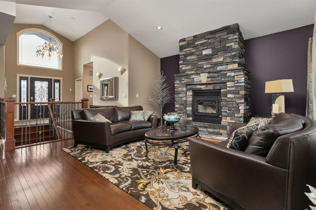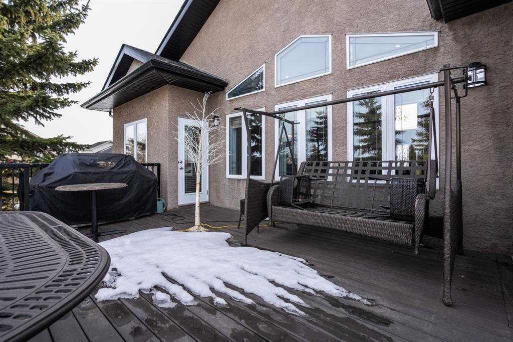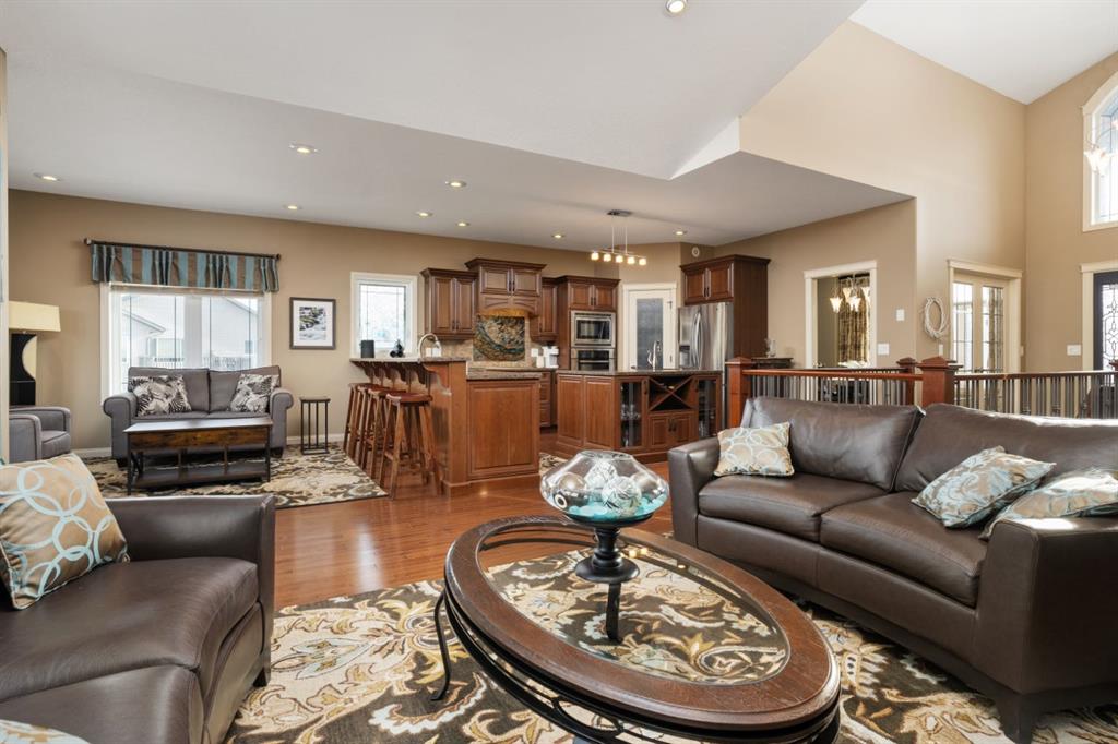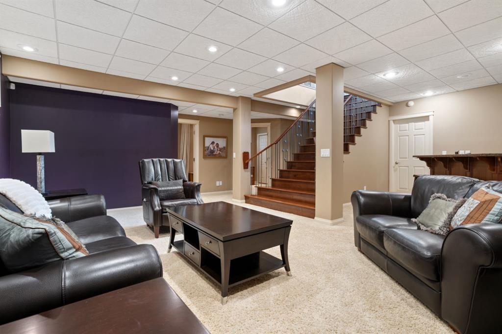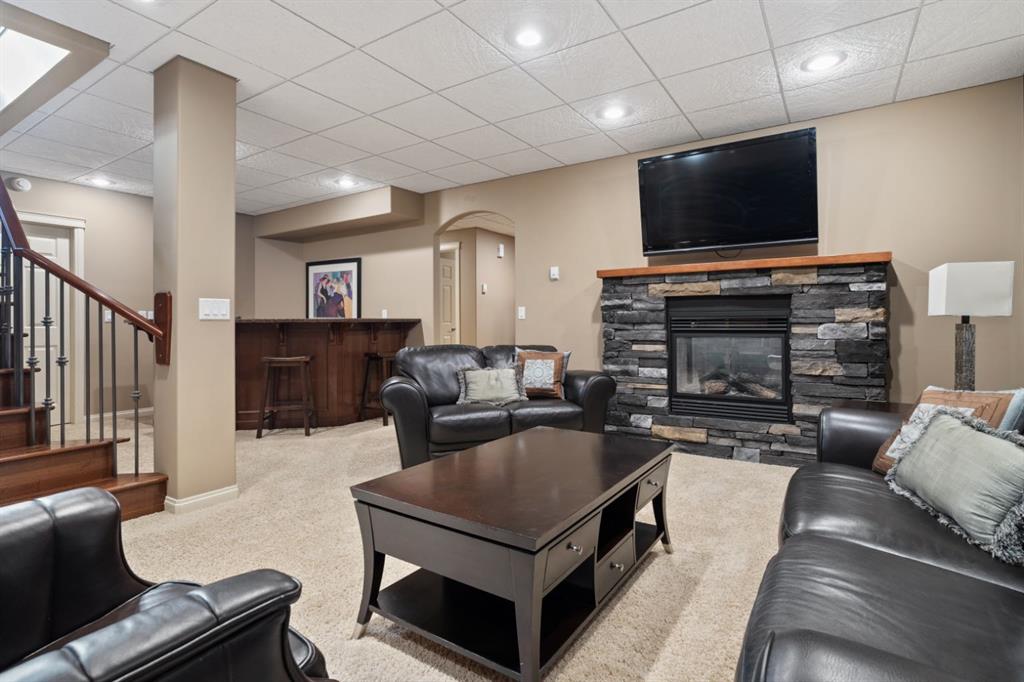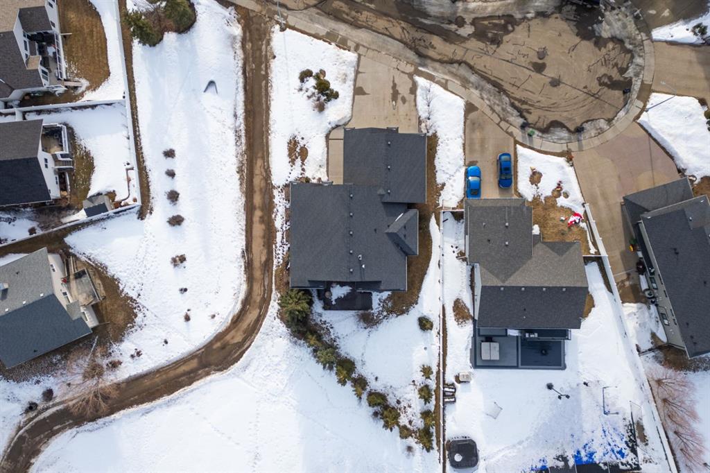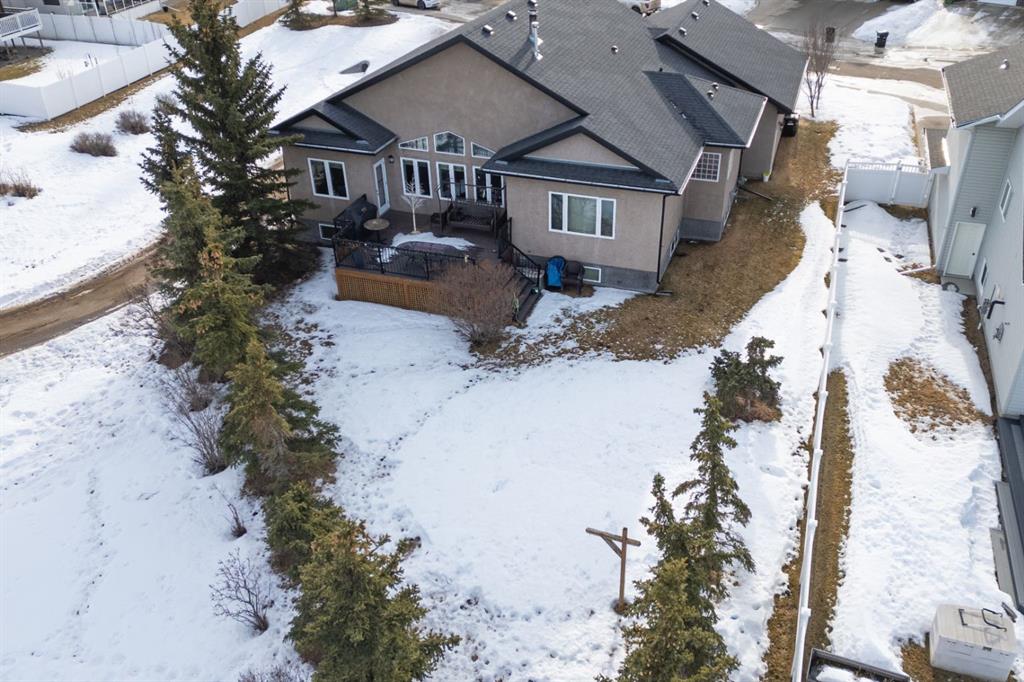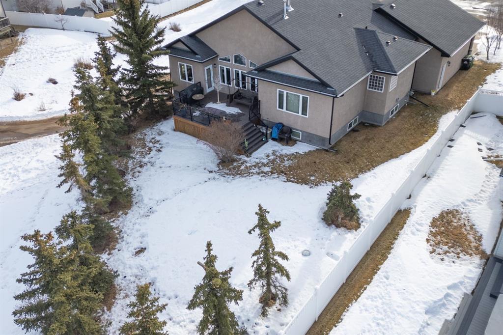 Welcome Home to Pure Elegance. This Custom Built Battle River Home is pristine and ready to impress. Backing a green space and adjacent walking trails. This home has so much to offer with over 1900sqft, Triple Garage with infloor heat, hardwood/tile floors, Stucco exterior, Triple pane windows, Full Basement Finish and many more features you're going to love. From the front entry you'll immediately know this home is special with its 9ft ceilings plus vaults - the eye line carries from front to back with tons of natural light throughout. Through French Doors is the formal front dining room that creates the perfect backdrop for all your family dinners. Into the main living area you'll find a floor to ceiling stone faced wood fireplace. An incredible kitchen awaits with loads of counter space, a centre island, beautiful cabinetry, corner pantry, stainless appliances and custom tile insert/backsplash. Sharing in this space is an option for dinette with raised eating bar or use it in its current way as a secondary sitting area. From here you'll access the no maintenance raised deck that gives views across your private treed yard plus it has a natural gas hook up for bbq. The exquisite Primary Bedroom has it's own gas fireplace, private door to the deck, a walk-in closet and a spa like 5pc ensuite with corner jetted tub, 11ft double vanity, tile floors and upgraded Shower with full surround. The main level rounds out with a 2nd bedroom, 4pc main bath and a dedicated laundry room with sink and upper cabinetry. Down the grand stairs is a fully finished basement with infloor heat that gives a multitude of options. A cozy family room sees a 2 sided fireplace and shares in the space with a full wet bar with its own dishwasher. The other side of the fireplace leads to a private library/study with full built-in maple shelving - a great option for a private home office. 2 additional full bedrooms around the corner along with an additional 4pc bath finish this wing of the basement. There's an additional 2 rooms open to each other - currently a gym and a small bedroom - consider using the gym as the bedroom and a flex space for guests or a full walk-in closet for a lucky teenager. Finishing off this incredible property is the 27x32 attached garage complete with infloor heating and a floor drain. This home WOWS in so many ways - you have to see for yourself!