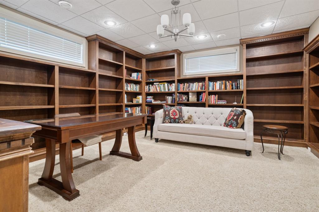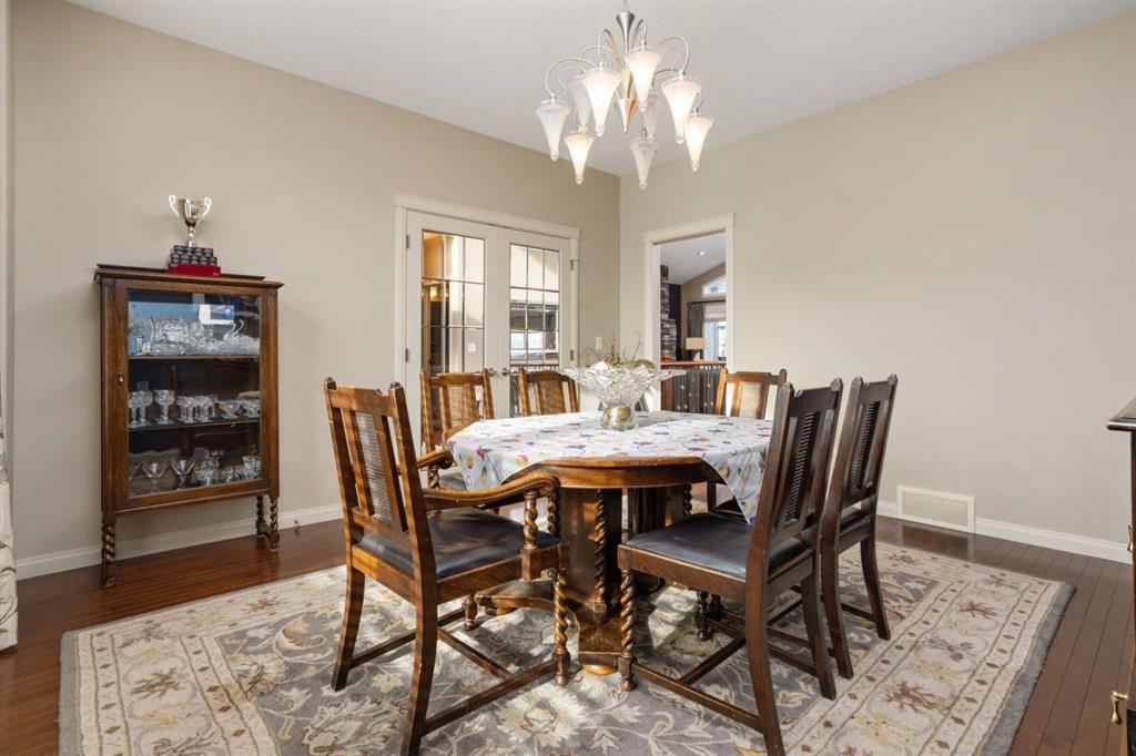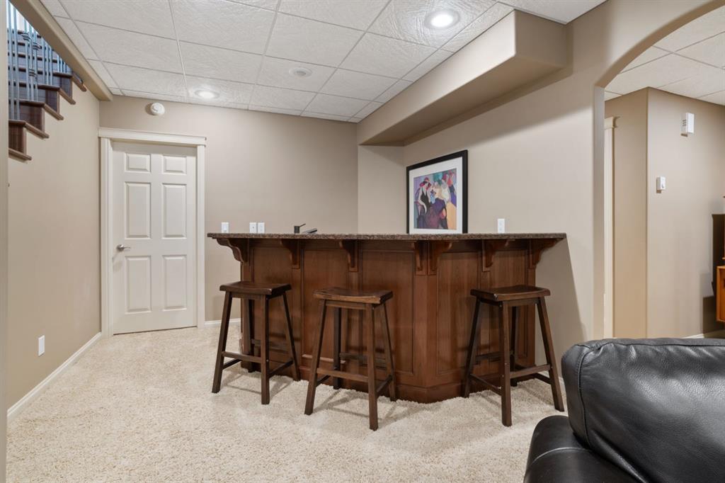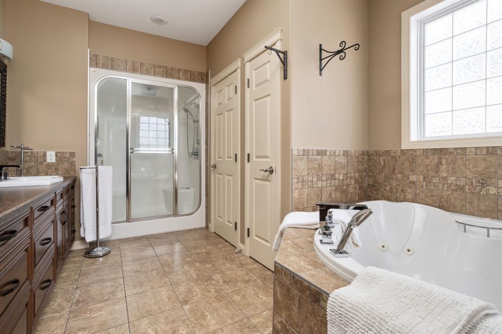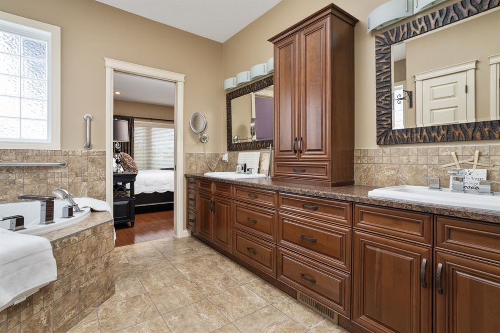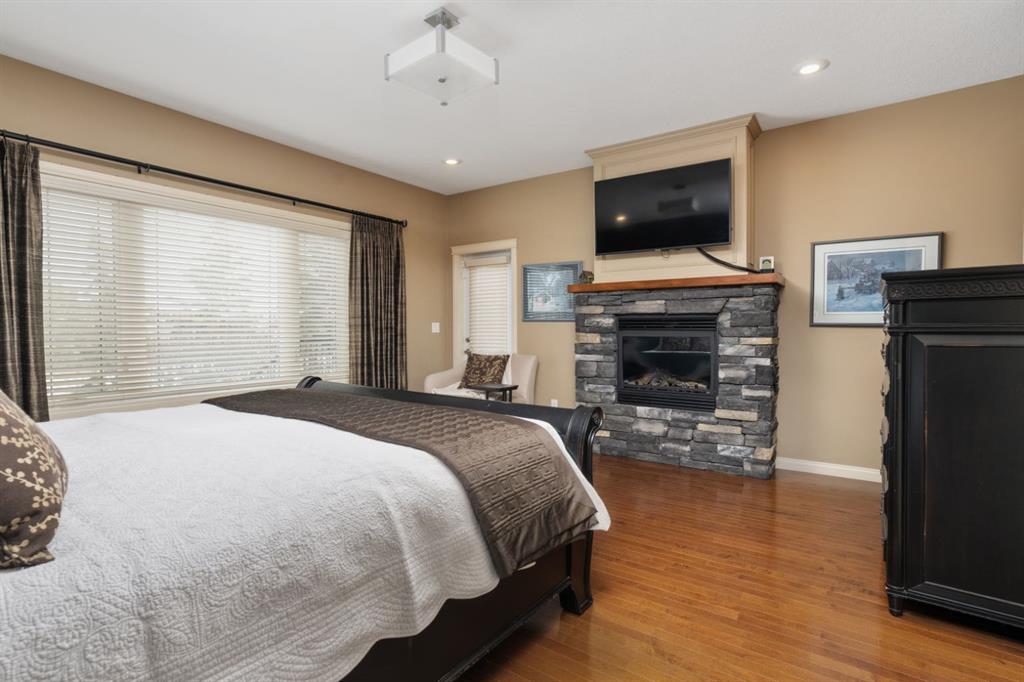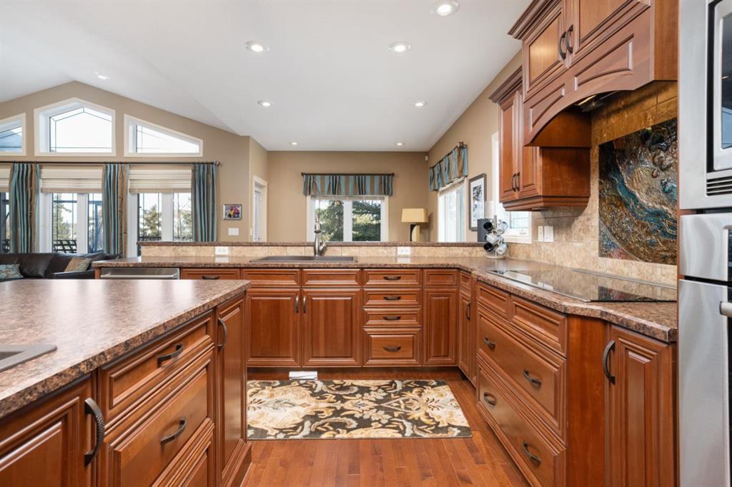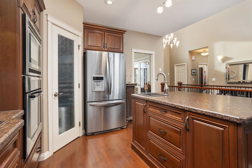 Welcome Home to Pure Elegance. This Custom Built Battle River Home is pristine and ready to impress. Backing a green space and adjacent walking trails. This home has so much to offer with over 1900sqft, Triple Garage with infloor heat, hardwood/tile floors, Stucco exterior, Triple pane windows, Full Basement Finish and many more features you're going to love. From the front entry you'll immediately know this home is special with its 9ft ceilings plus vaults - the eye line carries from front to back with tons of natural light throughout. Through French Doors is the formal front dining room that creates the perfect backdrop for all your family dinners. Into the main living area you'll find a floor to ceiling stone faced wood fireplace. An incredible kitchen awaits with loads of counter space, a centre island, beautiful cabinetry, corner pantry, stainless appliances and custom tile insert/backsplash. Sharing in this space is an option for dinette with raised eating bar or use it in its current way as a secondary sitting area. From here you'll access the no maintenance raised deck that gives views across your private treed yard plus it has a natural gas hook up for bbq. The exquisite Primary Bedroom has it's own gas fireplace, private door to the deck, a walk-in closet and a spa like 5pc ensuite with corner jetted tub, 11ft double vanity, tile floors and upgraded Shower with full surround. The main level rounds out with a 2nd bedroom, 4pc main bath and a dedicated laundry room with sink and upper cabinetry. Down the grand stairs is a fully finished basement with infloor heat that gives a multitude of options. A cozy family room sees a 2 sided fireplace and shares in the space with a full wet bar with its own dishwasher. The other side of the fireplace leads to a private library/study with full built-in maple shelving - a great option for a private home office. 2 additional full bedrooms around the corner along with an additional 4pc bath finish this wing of the basement. There's an additional 2 rooms open to each other - currently a gym and a small bedroom - consider using the gym as the bedroom and a flex space for guests or a full walk-in closet for a lucky teenager. Finishing off this incredible property is the 27x32 attached garage complete with infloor heating and a floor drain. This home WOWS in so many ways - you have to see for yourself!