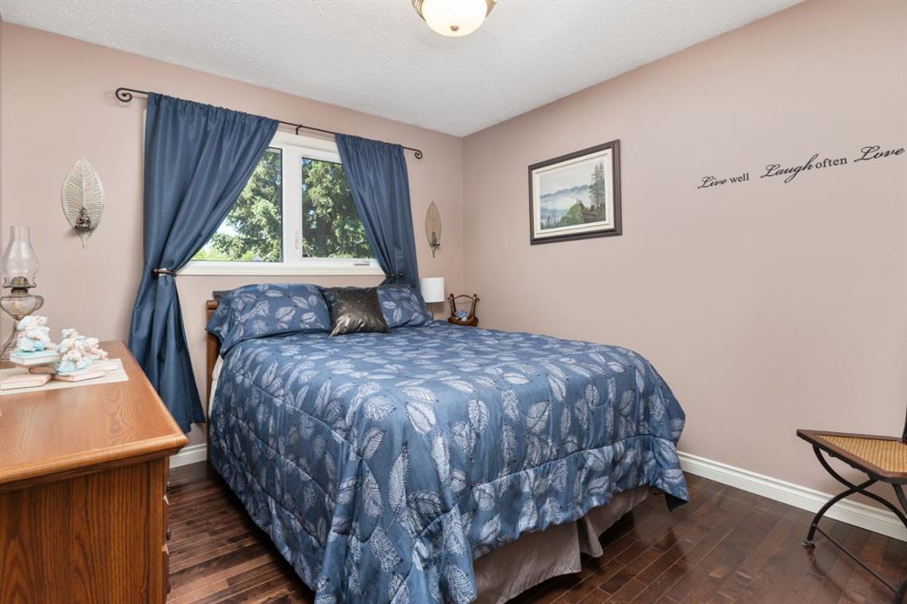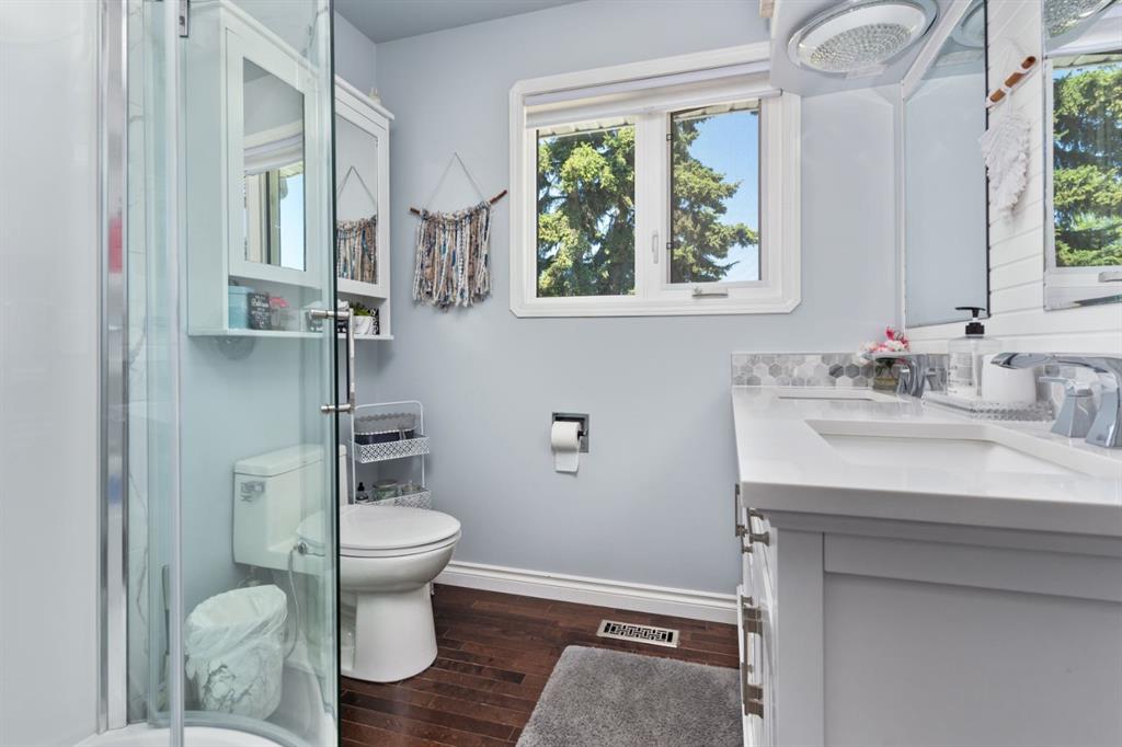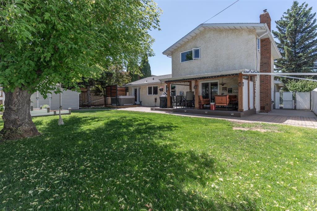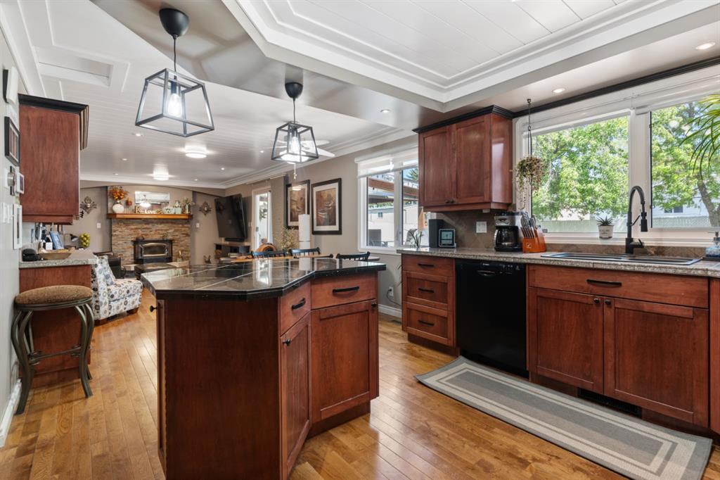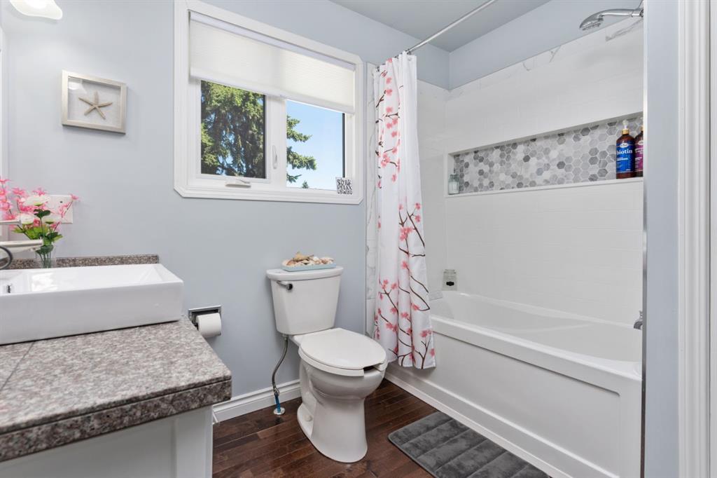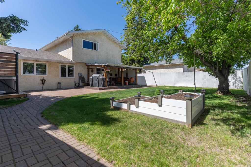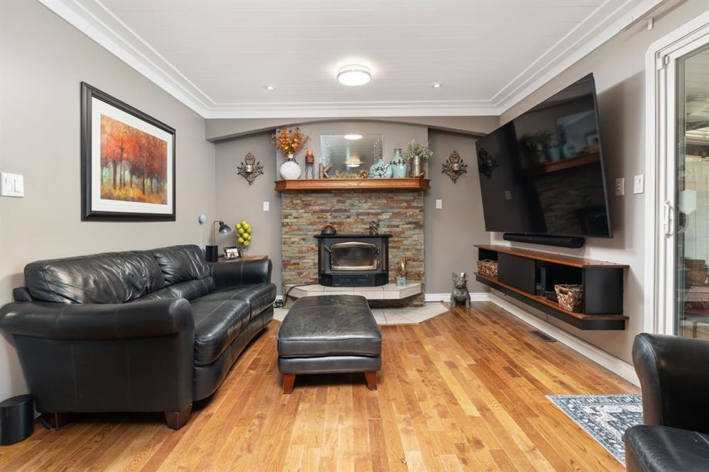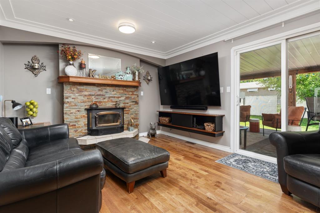 Welcome Home to 4313 - 66 St - a True Show Stopper! Step into comfort and style with this beautifully renovated home that blends timeless charm with modern upgrades. Perfect for families, this property offers a warm, welcoming atmosphere with thoughtful features throughout. Custom Cabinetry and granite tile counters, updated vinyl windows, rich hardwood flooring, doors/trims, pex plumbing, wainscotting, crown mouldings, custom wood features and so much more. From the bright West Facing living room you find a dedicated home office that could be converted back to a dining area as needed although there is a dinette off of the Fully Updated Custom Kitchen. Relax around the wood stove insert fireplace with beautiful stone finish or duck through the slider doors to a private covered deck with gas line for fire pit and roll down screens to keep out the wind. Around the corner you'll find a wonderful back entry, with outdoor and garage access, a 2pc bath for guests and handy laundry with built-in cabinetry. Follow the Hardwood Floors upstairs to find 3 well appointed bedrooms - the Primary with a beautiful custom 4pc ensuite - and an additional fully renovated 4pc bathroom. Retire to the fully renovated basement for the big game and enjoy in the custom bar and family room. You'll also find a 4th bedroom, a 3pc bathroom, Flex room and what every home of this size needs - a Huge Storage room. Enjoy the outdoors with mature trees, low maintenance front patio and back covered deck, stone paver walkways, a private hot tub area (hot tub negotiable), a handy shed and fenced with gate for future parking. Finally you'll find an attached 22x24 Heated Garage with built-in workbench and shelving. This home has been meticulously planned and masterfully updated - you'll love coming home.