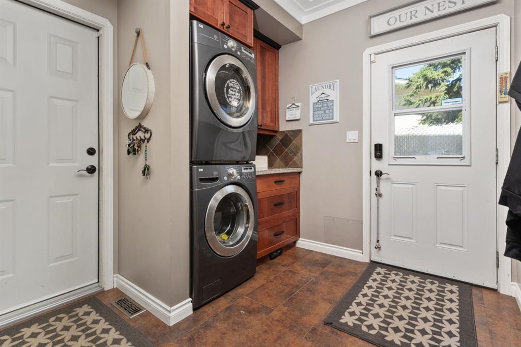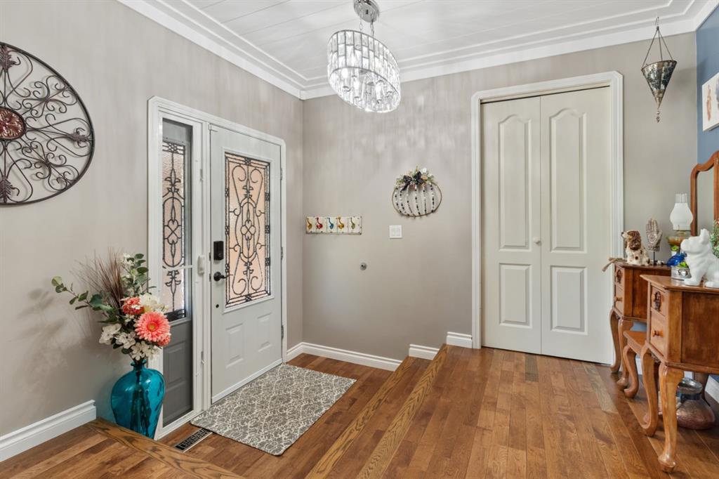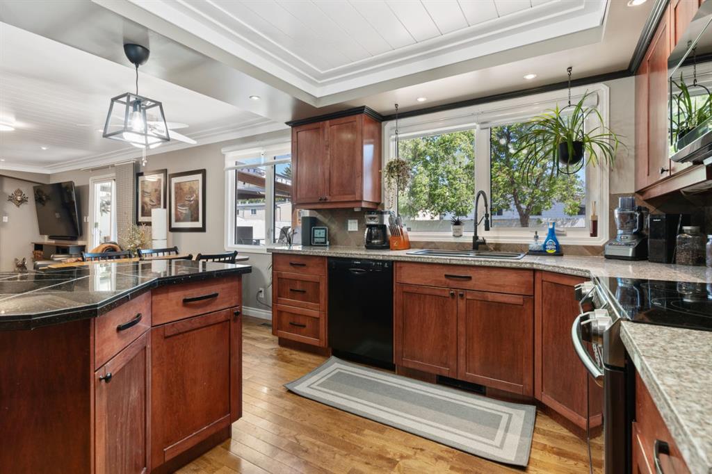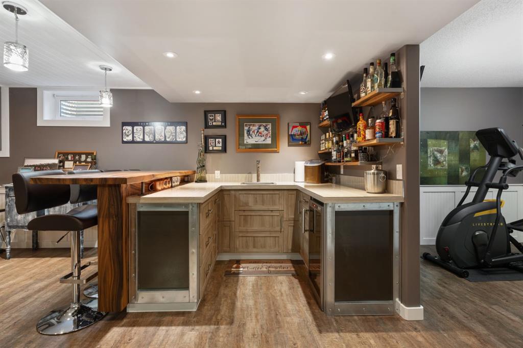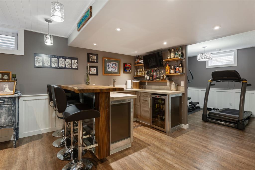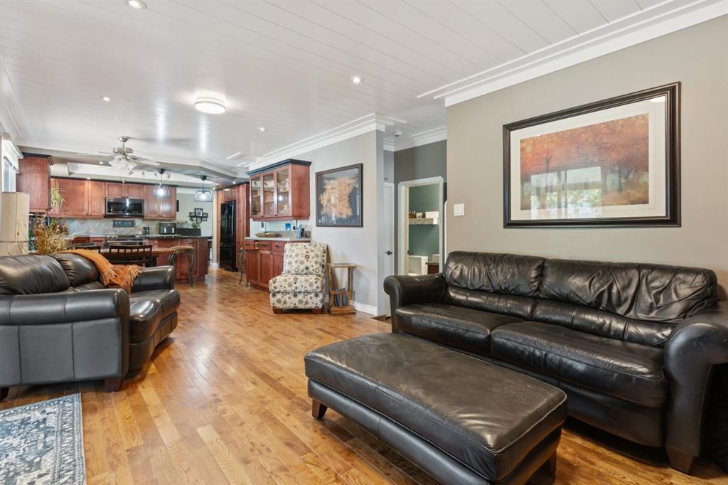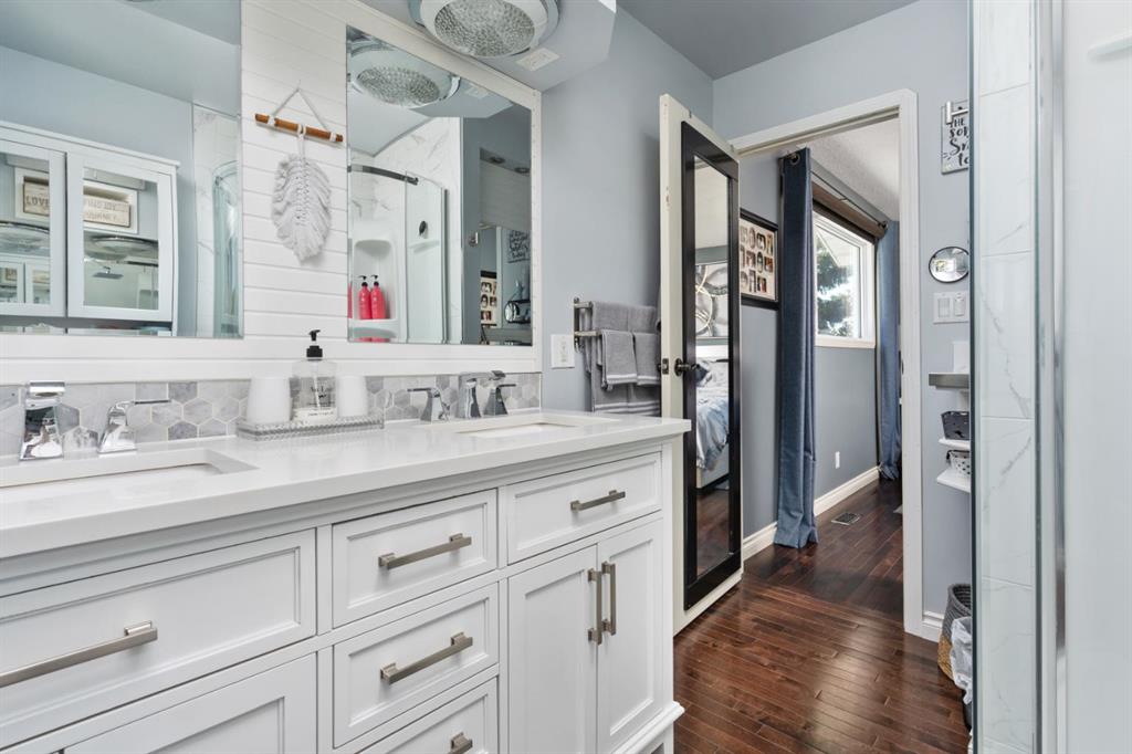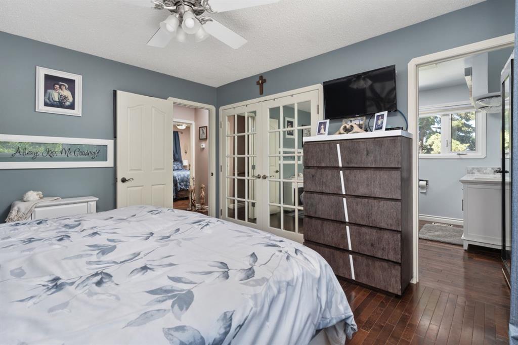 Welcome Home to 4313 - 66 St - a True Show Stopper! Step into comfort and style with this beautifully renovated home that blends timeless charm with modern upgrades. Perfect for families, this property offers a warm, welcoming atmosphere with thoughtful features throughout. Custom Cabinetry and granite tile counters, updated vinyl windows, rich hardwood flooring, doors/trims, pex plumbing, wainscotting, crown mouldings, custom wood features and so much more. From the bright West Facing living room you find a dedicated home office that could be converted back to a dining area as needed although there is a dinette off of the Fully Updated Custom Kitchen. Relax around the wood stove insert fireplace with beautiful stone finish or duck through the slider doors to a private covered deck with gas line for fire pit and roll down screens to keep out the wind. Around the corner you'll find a wonderful back entry, with outdoor and garage access, a 2pc bath for guests and handy laundry with built-in cabinetry. Follow the Hardwood Floors upstairs to find 3 well appointed bedrooms - the Primary with a beautiful custom 4pc ensuite - and an additional fully renovated 4pc bathroom. Retire to the fully renovated basement for the big game and enjoy in the custom bar and family room. You'll also find a 4th bedroom, a 3pc bathroom, Flex room and what every home of this size needs - a Huge Storage room. Enjoy the outdoors with mature trees, low maintenance front patio and back covered deck, stone paver walkways, a private hot tub area (hot tub negotiable), a handy shed and fenced with gate for future parking. Finally you'll find an attached 22x24 Heated Garage with built-in workbench and shelving. This home has been meticulously planned and masterfully updated - you'll love coming home.