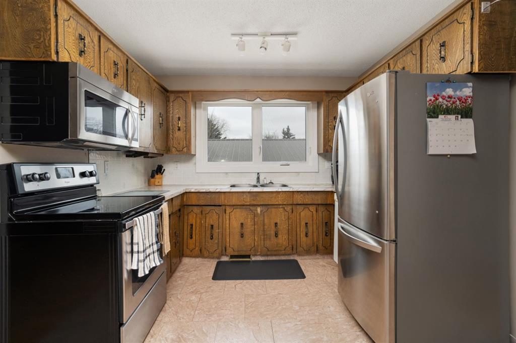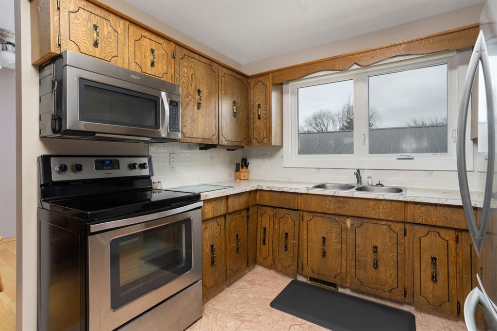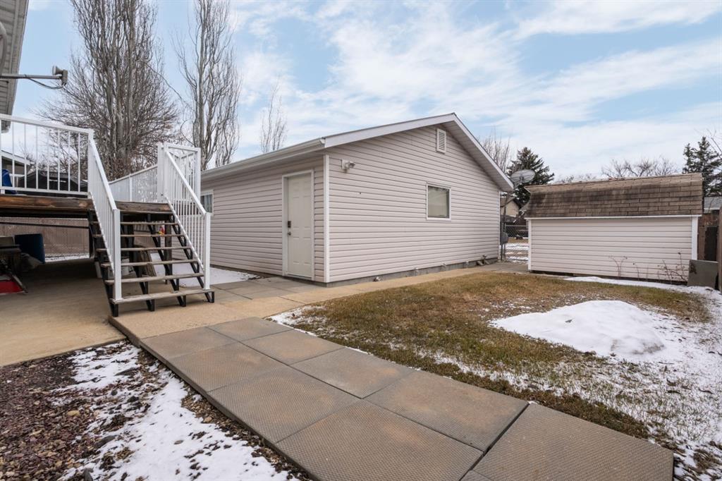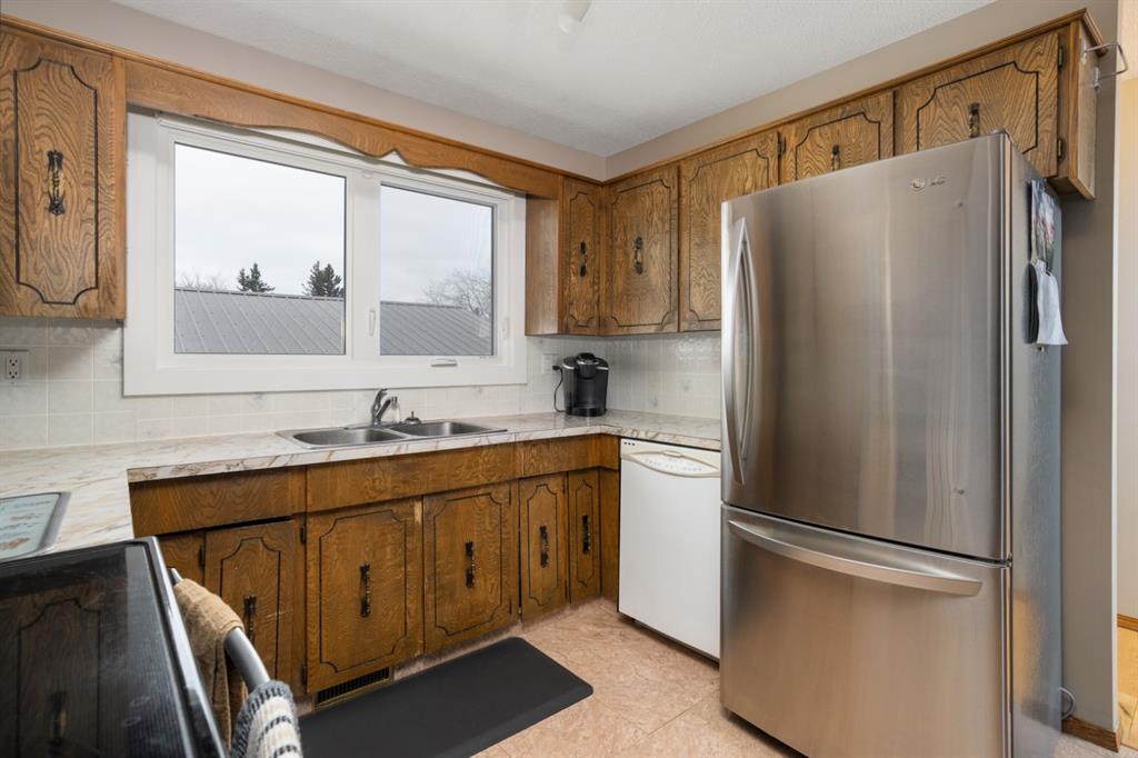 Quality Bilevel in a Quiet Area - Close to Green Space with a DREAM GARAGE - 30x26 with 2 doors and lots of parking at the rear. All new Vinyl Windows/Exterior Doors throughout make this home bright and so efficient. Coming in at 1160sqft this is a larger Bilevel than you normally see and it shows with large living and dining options that feature hardwood floors and a central kitchen that's been opened up for great flow and presentation. Huge Primary Bedroom has plenty of room for a King bed and has access to the shared 5pc bathroom. A second bedroom rounds out the main floor. Basement comes fully finished and bright with updated windows. Cozy family room for entertaining plus a flex room for hobbies. Two additional bedrooms and a 3pc bath plus huge utility room with laundry complete this lower level. Outside you'll enjoy a raised 9'9 x 22'5 South facing deck, fully fenced yard, shed with power and Trailer parking options. The real showstopper is the 30x26 Heated Garage with 2 insulated doors, 3x 220 plugs and upgrade sub panel. Finally a property with the kind of garage you deserve!